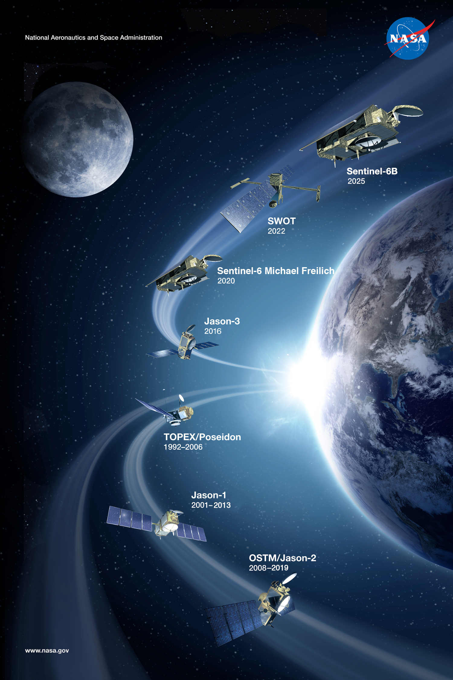 NASA studies changes in sea-level primarily by using orbiting spacecraft. These satellites capture the changes with altimeters – instruments that rely on radar or laser pulses. These altimetry measurements can be combined with data from coastal tide gauges and from Argo floats, a global network of mobile ocean sensors that move up and down the water column, to provide a fuller picture of sea-level rise. To ensure the accuracy of such measurements, NASA helps maintain another global network of ground-based and orbital instruments that track the position and drift of geographic points – creating the International Terrestrial Reference Frame.